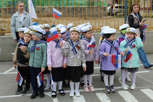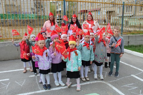 В дошкольном отделении царила атмосфера торжественности и волнения. В преддверии 80-ой годовщины Победы в Великой Отечественной войне, здесь прошел парад, посвященный этому знаменательному событию. Маленькие участники, облаченные в военную форму, с гордостью маршировали по площади, держа в руках флажки и цветы.