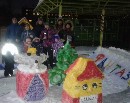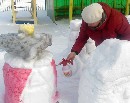 Наша группа приняла участие в конкурсе на лучший зимний участок. Задействованы были все – дети, родители (мамы и папы) и воспитатели. Решено было сделать фигуры из сказки Э. Гофмана «Щелкунчик». Фантазеры помогали сгребать снег в кучи и заполнять им пустые коробки, воспитатели вместе с родителями строили и заливали горку, а также лепили из снега фигуры, которые потом раскрашивали. А краски готовили ребята, разводя гуашь в бутылочках. Юлия Анатольевна Коратаева вместе с Машей наморозили интересных льдинок, которыми украсили участок.