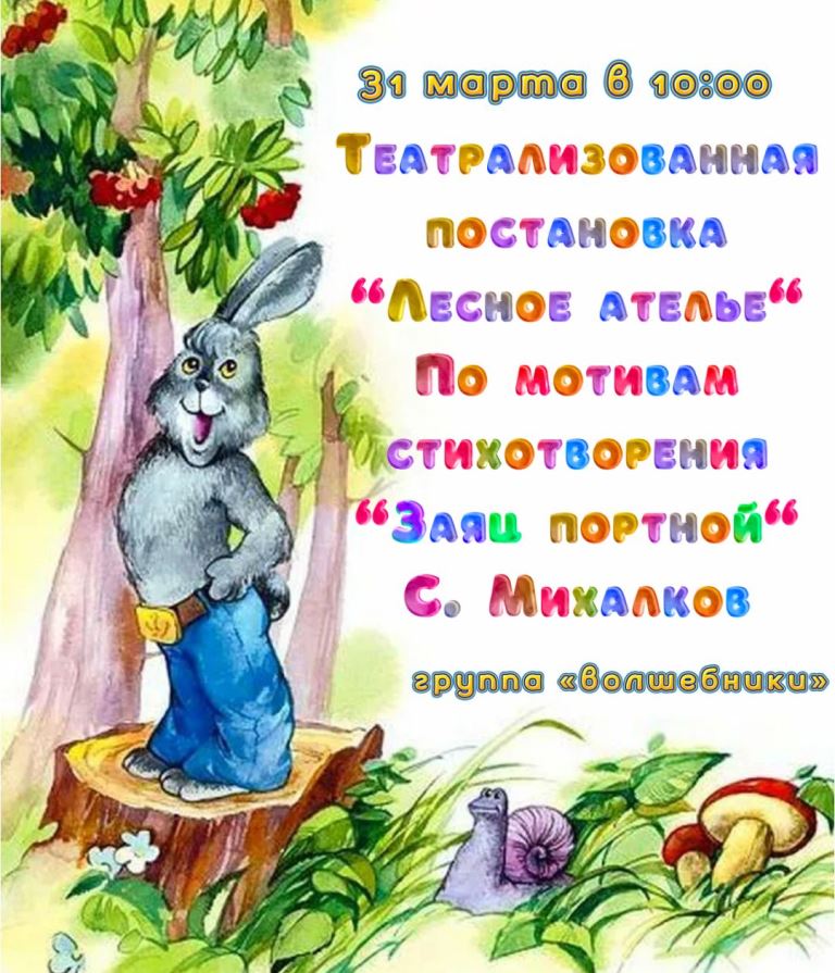 В этом году театральная неделя в нашем Дошкольном отделении была посвящена 110-летию со дня рождения Сергея Владимировича Михалкова – автора советского и российского гимнов, стихов о «дяде Степе», многих басен, пьес и сценариев и создателя популярного в советское время сатирического киноальманаха «Фитиль». По словам Андрея Кончаловского, произведения Сергея Михалкова были и остаются особенными: «В его стихах ребенок, во-первых, узнавал себя, во-вторых, учился быть ответственным за свои поступки, за свою семью, за страну. Его чувство патриотизма было абсолютно ненавязчивым, с одной стороны, ему удавалось сохранить детскую непосредственность, с другой – быть взрослым, серьезным, ответственным человеком».
